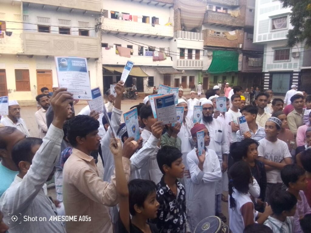 साइबर बुकिंग और फ्राडों गैंग की सूचना मिलते ही स्थानीय पुलिस को सूचित करें। इस कार्यक्रम मे जागरुकता अभियान मोहल्ले मोहल्ले में पर जाकर समाज सेवा सोसायटी के लोगों द्वारा यह जागरूकता अभियान की जानकारी दिया जा रहा।