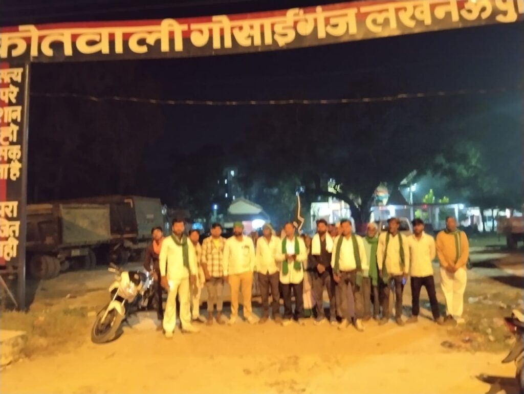एम डी न्यूज़ चैनल रिपोर्टर प्रमोद कुमार लखनऊ थाना गोसाईगंज तहसील मोहनलालगंज आज रात लगभग 2:30 बजे कोतवाली गोसाईगंज लखनऊ ग्राम पंचायत आदमपुर नौबस्ता मजरा मगडूम नगर में मेला लगा था मेले में कुछ लोगों द्वारा झगड़ा हो गया जिस महिला ग्राम अध्यक्ष आशा रावत व पति रामकरण रावत को थाना गोसाईगंज की पुलिस पकड़ ले गई तत्काल धरना जारी कोतवाली गोसाईगंज में सभी सम्मानित किसान कार्यकर्ताओं वह पदाधिकारी को सूचित करके जल्द से जल्द थाना कोतवाली गोसाईगंज पहुंचकर किसान यूनियन जिला अध्यक्ष सरदार सिंह गौतम के साथ जिला महामंत्री जगदीश खलीफा जिला सचिव गिरीश कुमार रावत तहसील अध्यक्ष रामगोपाल रावत ब्लॉक अध्यक्ष संतोष कुमार रावत महिला जिला अध्यक्ष जागेश्वरी प्रधानी चाची ग्राम अध्यक्ष ग्राम अध्यक्ष आदेश कुमार रावत महिला प्रदेश प्रवक्ता सीमा धीमान सैकड़ो किसान कार्यकर्ता मौजूद थे लगभग 1 घंटे प्रदर्शन के बाद चल इंस्पेक्टर बृजेश कुमार त्रिपाठी के द्वारा महिला ग्राम अध्यक्ष आशा रावत को छोड़ दिया गया धरना प्रदर्शन स्थगित करके सभी कार्यकर्ता पदाधिकारी अपने-अपने घर को वापस आ गए जय जवान जय किसान का नारा लगाते हुए सभी अपने-अपने घर वापस आ गए