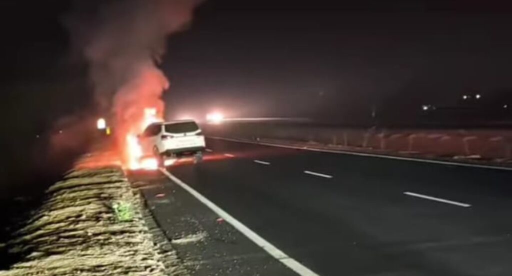 रिफाइनरी क्षेत्र के मथुरा-बरेली हाईवे पर रविवार रात नौ बजे गांव करनावल के पास एक चलती कार में अचानक आग लग गई। इंजन से धुआं उठने के बाद पूरी गाड़ी आग की लपटों में घिर गई। आग की लपटों को देख कार सवार बाहर निकल आए। इससे कोई जनहानि नहीं हुई है। पुलिस ने अग्निशमन की गाड़ी को बुलाकर आग पर काबू पाया।