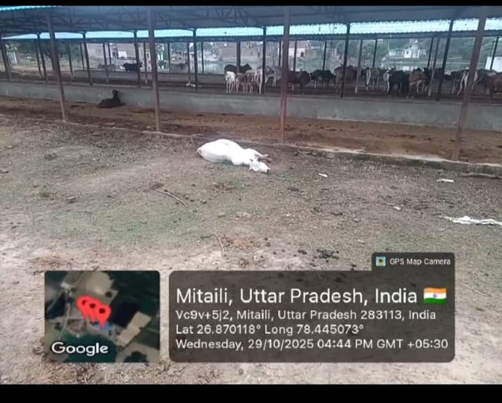 आगरा जिला के पिनाहट ब्लॉक के मितायली गौ शाला मे मृत पड़ी 4 गाय, भूख से तड़पती नजर आयी गाय, केयर टेकर ने नहीं खोला दरवाजा, ग्रामीणों ने इसका विरोध किया
