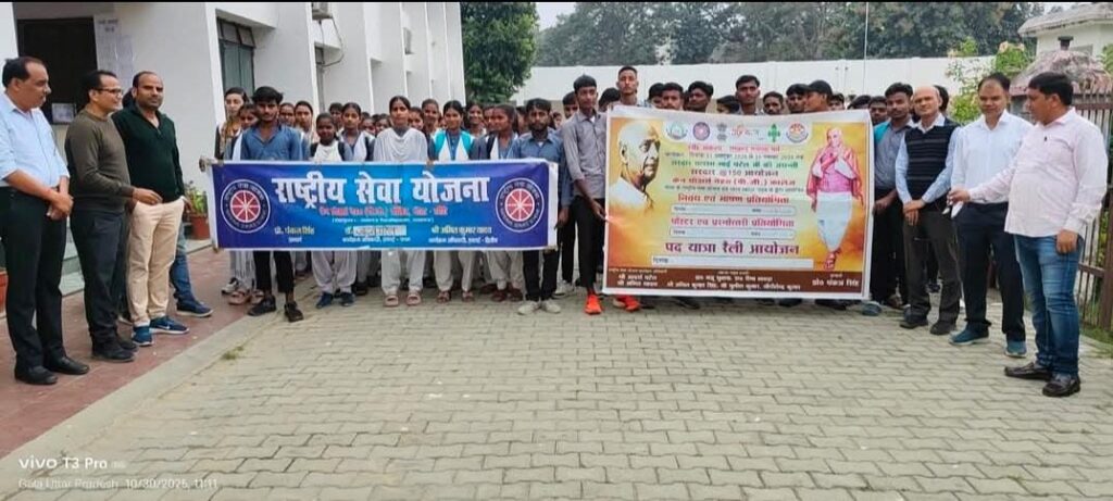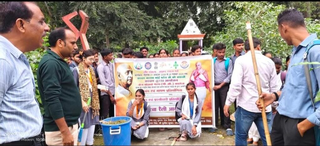 लखीमपुर खीरी एम डी न्यूज तहसील रिपोर्ट दीपक राठौर सी.जी.एन.(पी.जी.) काॅलेज, गोला गोकर्णनाथ-खीरी में आज दिनांक 30.10.2025 को महाविद्यालय में भारत के लौह पुरूष सरदार वल्लभ भाई पटेल की 150वीं जयंतीसी.जी.एन.(पी.जी.) काॅलेज, गोला गोकर्णनाथ-खीरी में आज दिनांक 30.10.2025 को महाविद्यालय में भारत के लौह पुरूष सरदार वल्लभ भाई पटेल की 150वीं जयंती sardar @150के प्री इवेंट श्रृंखला में रन फाॅर यूनिटी/ स्वच्छता अभियान कार्यक्रम महाविद्यालय के प्राचार्य प्रो.पंकज सिंह के कुशल मार्ग निर्देशन एवं राष्ट्रीय सेवा योजना के कार्यक्रम अधिकारी/sardar@150 के जिला नोडल अधिकारी डाॅ. आदर्श पटेल एवं राष्ट्रीय सेवा योजना के कार्यक्रम अधिकारी डाॅ. अमित कुमार यादव की उपस्थिति में आयोजित की गई। रन फाॅर यूनिटी कार्यक्रम महाविद्यालय से प्रारम्भ होकर विनोदनी पार्क तक जिसमें राष्ट्रीय सेवा योजना के स्वयं सेवकों एवं स्वयं सेविकाओं के साथ महाविद्यालय के छात्र/छात्राएं उत्साहपूर्वक अपनी भागीदारी सुनिश्चित करने के साथ एकता की भावना को जाग्रत किया। स्वच्छता अभियान कार्यक्रम के अन्तर्गत विनोदनी पार्क में छात्र/छात्राओं के द्वारा साफ-सफाई की गई। इस अवसर पर महाविद्यालय के प्राध्यापक डाॅ. नवनीत कुमार, डाॅ. प्रमोद कुमार, डाॅ. अरूण कुमार सिंह, डाॅ. मनोज कुमार सरोज, डाॅ. विवेक कुमार सिंह, डाॅ. शैलेन्द्र, डाॅ. अशोक कुमार, डाॅ. देवानन्द, डाॅ. राकेश कुमार अग्रहरि, डाॅ. अनिल कुमार, डाॅ. रीमा छाबड़ा, डाॅ. विश्वनाथ आदि ने उपस्थित होकर कार्यक्रम को सफल बनाने हेतु दिशा-निर्देश प्रदान करते हुए सरदार वल्लभ भाई पटेल के कार्यो, विचारो, आजादी में योगदान, रियासतों के एकीकरण से भी परिचित कराया तथा छात्र/छात्राओं के बीच राष्ट्र भावना एवं राष्ट्रीय हित को सर्वोपरि रखने की भी अपील की।