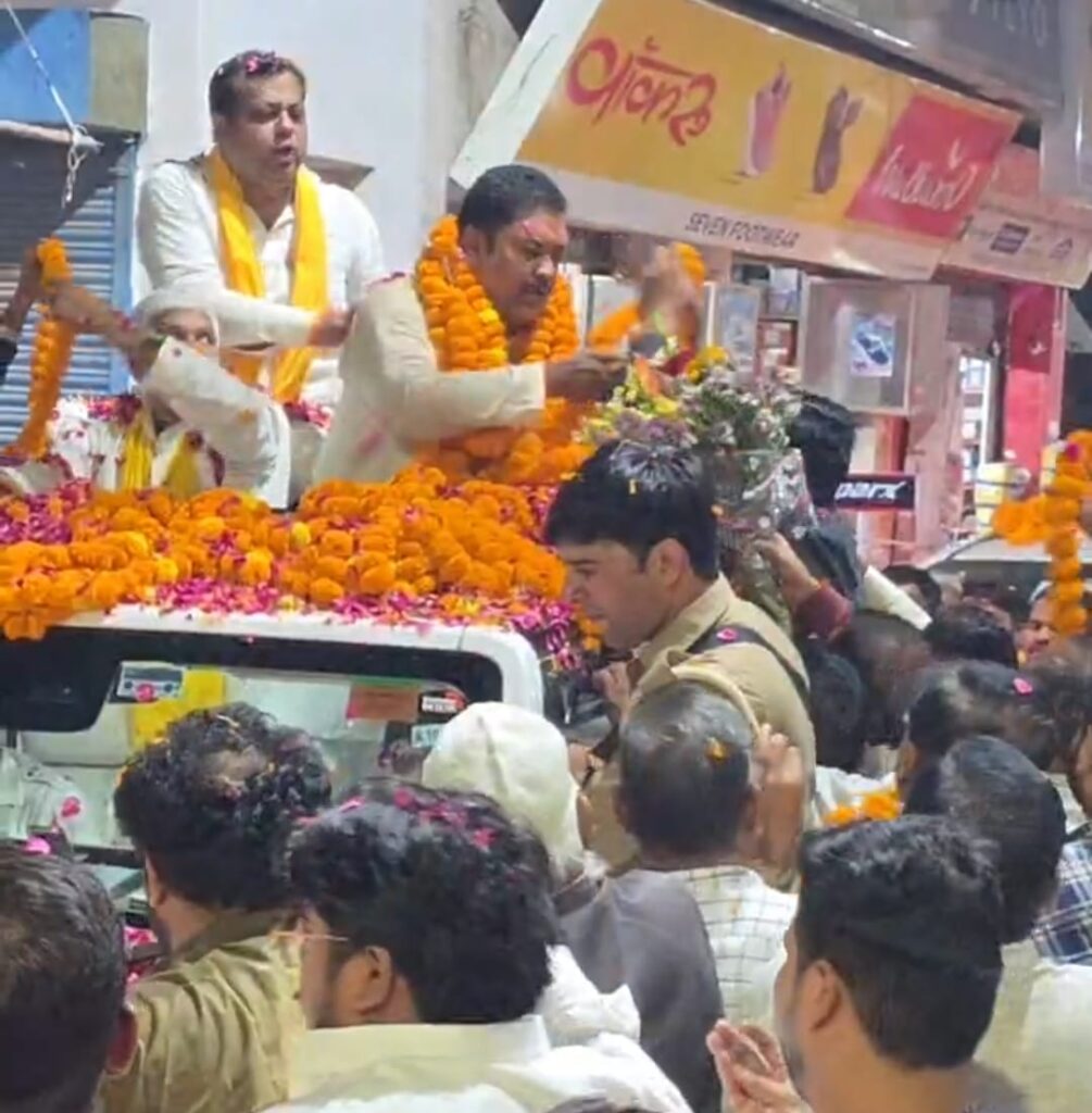 विधायक राजीव कुमार सिंह उर्फ बब्बू भइया को विधान सभा प्रतिनिहित विधायन समिति का सभापति बनाए जाने पर नगर व क्षेत्र वासियों ने फूल वर्षा कर ढोल नगाड़ों के साथ किया जोर दार स्वागत।
