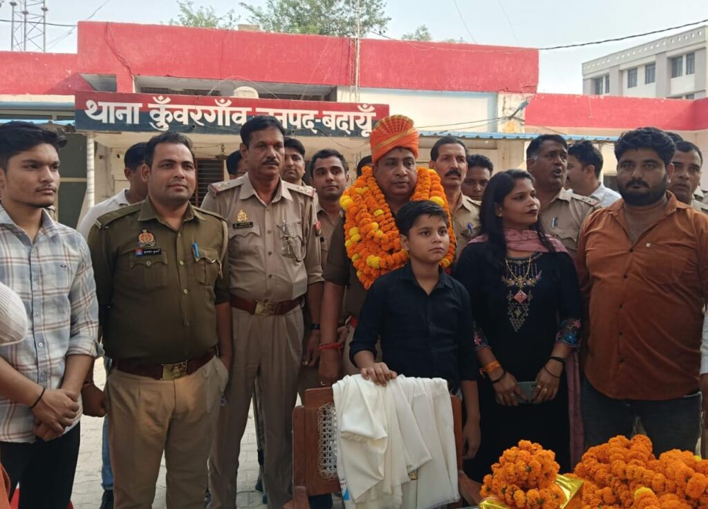 बदायूं ,कुंवरगांव शनिवार को थाना कुंवरगांव में पूर्व थाना प्रभारी बी.पी. सिंह के सम्मान में विदाई समारोह का आयोजन किया गया। समारोह में नगर व क्षेत्र के लोग बड़ी संख्या में शामिल हुए। पुलिसकर्मियों और स्थानीय नागरिकों ने ढोल-नगाड़ों की गूंज के बीच उनका भव्य स्वागत कर उन्हें भावभीनी विदाई दी। माहौल एक ओर जहां उत्साह से भरा था, वहीं दूसरी ओर उनके जाने की हल्की उदासी भी सभी के चेहरों पर झलक रही थी।समारोह के दौरान थाना परिसर में लोगों का तांता लगा रहा। हर कोई बी.पी. सिंह से मिलकर उन्हें शुभकामनाएं देना चाहता था। पुलिस विभाग के साथ-साथ नगर के सम्मानित नागरिकों, व्यापारियों और समाजसेवियों ने भी उपस्थित होकर अपने प्रिय अधिकारी को विदा किया।कार्यक्रम में मौजूद लोगों ने कहा कि बी.पी. सिंह एक सख्त लेकिन न्यायप्रिय अधिकारी रहे, जिन्होंने अपने कार्यकाल में अपराधियों पर नकेल कसने के साथ-साथ जनता से संवाद और सहयोग का रिश्ता भी बनाए रखा। उनके समय में थाना कुंवरगांव की छवि आम जनता के बीच मजबूत और भरोसेमंद बनी।वक्ताओं ने बताया कि बी.पी. सिंह हमेशा जनता के बीच रहकर समस्याओं का समाधान करते थे। उन्होंने थाना परिसर में अनुशासन, स्वच्छता और टीम भावना को बढ़ावा दिया। उनके नेतृत्व में पुलिस कर्मियों ने उत्कृष्ट कार्य करते हुए कई उपलब्धियाँ अर्जित कीं।इस मौके पर पुलिस कर्मियों और क्षेत्रवासियों ने उन्हें फूलमालाओं से लाद दिया। ढोल बाजों की थाप पर लोग नाचते हुए उन्हें विदा कर रहे थे।