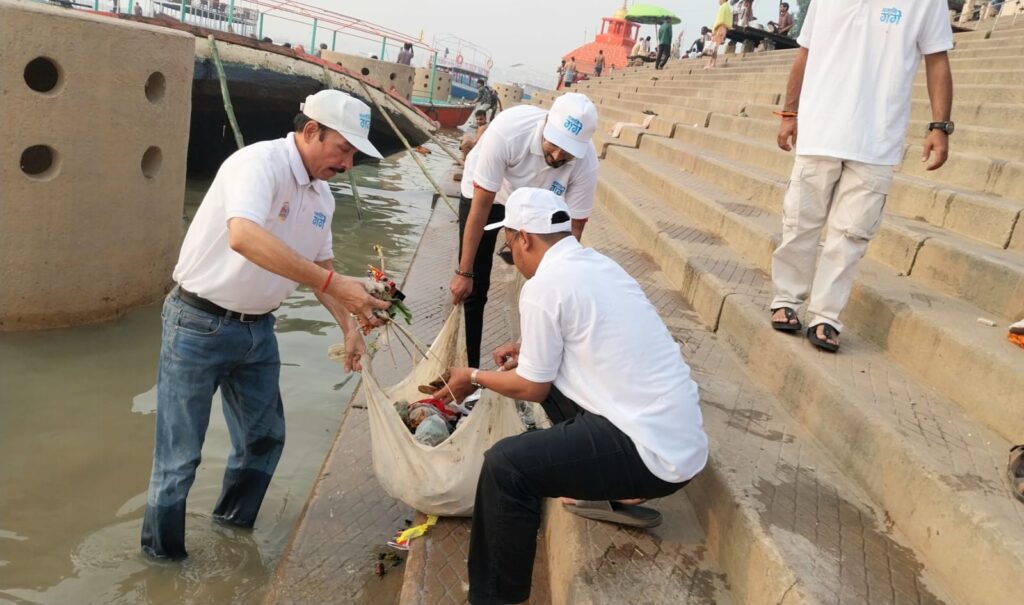” देव दीपावली के पूर्व नमामि गंगे और नगर निगम ने कसी कमर, गंगा घाटों पर चला स्वच्छता अभियान ” वाराणसी से संवादाता सहायक ब्यूरो सलीम जावेद ” सिंधिया घाट से मणिकर्णिका घाट तक चलायी स्वच्छता की मुहिम, काशीवासियों को गंगा स्वच्छता से जुड़ने की अपील ” देव दीपावली के पूर्व सोमवार को नमामि गंगे व नगर निगम ने सिंधिया घाट से मणिकर्णिका घाट तक स्वच्छता की मुहिम चलाई साथ ही काशीवासियों को गंगा स्वच्छता से जुड़ने की अपील की गई है। काशी के घाटों को स्वच्छ रखने के लिए आयोजित विशेष सफाई अभियान में जनता भी जुड़ी । नमामि गंगे ने अभियान चलाकर घाटों की सफाई के साथ जागरूकता की। स्वच्छता अभियान के तहत घाटों पर जगह- जगह फेंके गए कूड़े कचरे को भी नमामि गंगे के सदस्यों ने उनके सही स्थान नगर निगम की कूड़ागाड़ी तक पहुंचाया। घाटों पर श्रमदान के बाद वहां उपस्थित पर्यटकों और आम लोगों को गंगा और घाटों को स्वच्छ रखने की शपथ भी दिलाई गई।पतित पावनी मां गंगा की अविरल धारा को निर्मलता के साथ बहने और उनको हमेशा स्वच्छ रखने के लिए सभी संकल्पबद्ध हुए। गंगा मैया की जय के बीच नमामि गंगे काशी क्षेत्र के संयोजक व नगर निगम के स्वच्छता ब्रांड एम्बेसडर राजेश शुक्ला के नेतृत्व में सभी ने ‘सबका साथ हो, गंगा साफ हो’ के नारे संग प्रत्येक काशीवासी को गंगा स्वच्छता से जुड़ने की अपील की गई। गंगा सेवक राजेश शुक्ला ने कहा कि गंगा सफाई अभियान के लिए युवाओं और माताओं-बहनों का उत्साह मां गंगा के लिए बड़ा लाभकारी है। स्वच्छता की प्रतिबद्धता के लिए संकल्प, साफ-सफाई और जागरूकता से अपनी गंगा नित निर्मलीकरण की ओर अग्रसर होंगी। आयोजन का मूल उद्देश्य गंगा से सबको जोड़ना है। उन्होंने कहा कि गंगा स्वच्छता के लिए जन सहभागिता बहुत जरूरी है। आयोजन में प्रमुख रूप से नमामि गंगे काशी क्षेत्र के संयोजक व नगर निगम के स्वच्छता ब्रांड एम्बेसडर राजेश शुक्ला, आदर्श श्रीवास्तव, शिवम त्रिपाठी, विंस पटेल, सत्यम अग्रवाल एवं नगर निगम के कर्मचारी शामिल रहे।