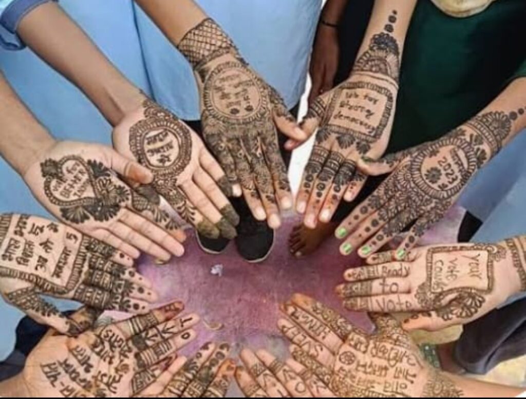 बाराबंकी। जहांगीराबाद स्थित रमता राम चतुर्भुजी महाराज की पावन तपोस्थली रामपुर धाम में चल रहे रामपुर महोत्सव के दूसरे दिन मेंहदी प्रतियोगिता का आयोजन किया गया जिसमें सैकड़ों बच्चों ने उत्साहपूर्वक प्रतिभाग किया |