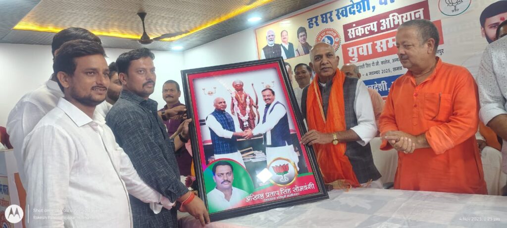 सांगठनात्मक जनपद मछलीशहर के बेलवा स्थिति स्व मालती सिंह पी जी कालेज के सभागार मे आयोजित युवा सम्मलेन को पूर्व सांसद विद्या सागर सोनकर ने सम्बोधित किया उन्होंने कहा यह समय है देश के युवा स्वदेशी की तरफ बढे हमारे देश मे पर्याप्त संभावनाएं है और और धीरे धीरे ही सही भारतवर्ष अपने पैरो पर खड़ा हो रहा है युवा ही देश के भविष्य है विशिष्ट अतिथि क्षेत्रीय मंत्री पवन पाल ने कहा की निश्चित ही युवा आत्मनिर्भरता की तरफ बढ़ रहा है युवा सम्मेलन मे जो जनसमूह एकत्रित हुआ है यह यहाँ से संकल्पित होकर जायेगा की ज्यादा से ज्यादा स्वदेशी की तरफ बढ़ा जाये कार्यक्रम की अध्यक्षता पूर्व जिला अध्यक्ष ब्रम्ह देव मिश्रा ने किया। जिलाध्यक्ष भाजयुमो अखिल प्रताप सिंह ने सभी आगंतुक का स्वागत कर सम्मानित किया कार्यक्रम मे प्रमुख रूप से ब्लाक प्रमुख प्रतिनिधि पंकज शुक्ला , भाजपा नेता अरविंद सिंह दारा , क्षेत्रीय मंत्री किसान मोर्चा अर्चना शुक्ला , जिला महामंत्री मनोज दुबे , राकेश शुक्ला , बृज नारायण दुबे , सुदर्शन सिंह , रणविजय सिंह , प्रहलाद यादव , जयेश सिंह , विनोद जायसवाल, पंकज पाठक , अंकित मिश्रा , अनुज जायसवाल , अलोक सिंह , रमेश विश्कर्मा , शनी सिंह, संदीप राजभर, आशीष सिंह मीनू , सतेंद्र सिंह , रवि पाटव , कृष्ण कुमार पाठक , रमेश दुबे , राजेश सिंह, अंबरीश सिंह, जगदीश चौहान रविशंकर दुबे , शरद उपाध्याय , मनोज सिंह अवधेश शुक्ला, इत्यादि लोग उपस्थित रहे