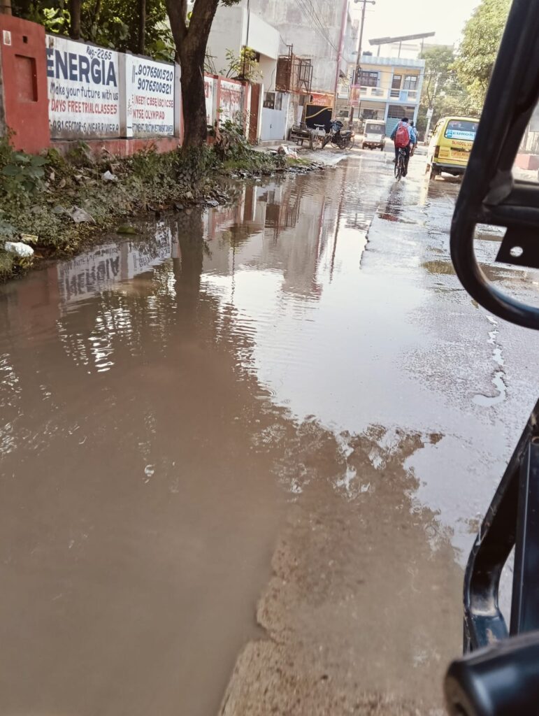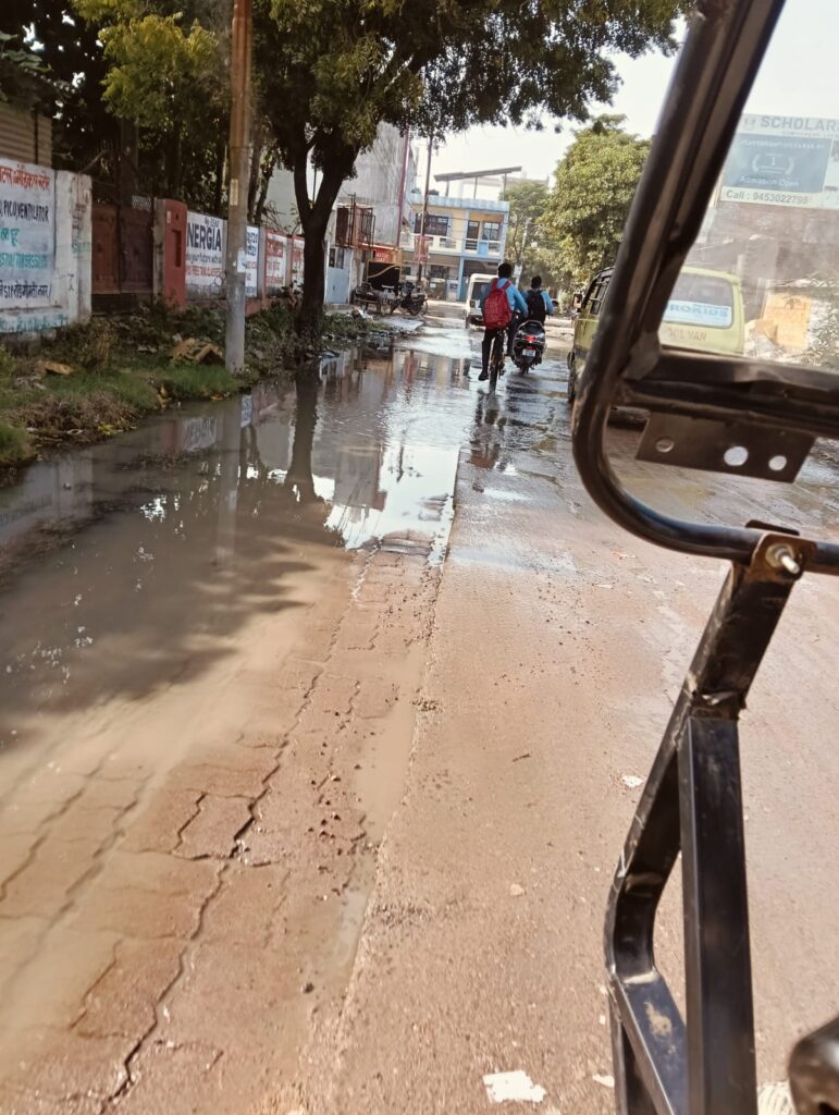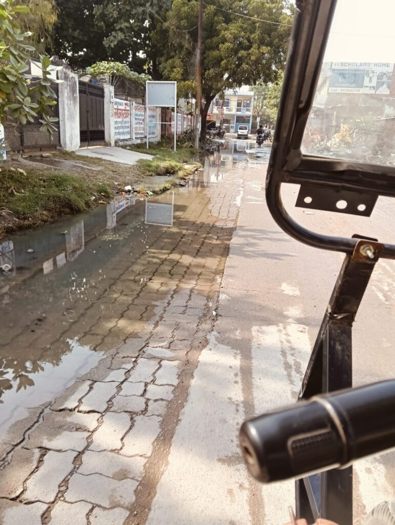 नगर निगम कर्मचारियों की लापरवाही से सड़क पर बहता गंदा पानी