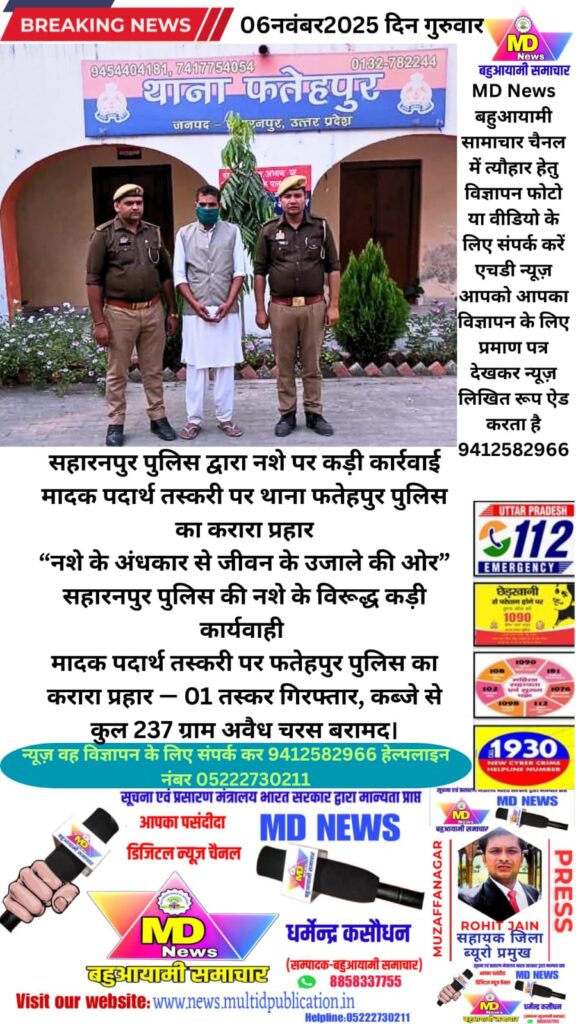 सहारनपुर पुलिस द्वारा नशे पर कड़ी कार्रवाई मादक पदार्थ तस्करी पर थाना फतेहपुर पुलिस का करारा प्रहार