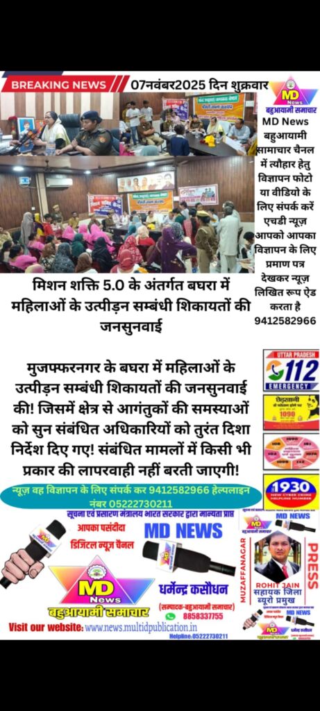 मुजफ्फरनगर के बघरा में महिलाओं के उत्पीड़न सम्बंधी शिकायतों की जनसुनवाई की! जिसमें क्षेत्र से आगंतुकों की समस्याओं को सुन संबंधित अधिकारियों को तुरंत दिशा निर्देश दिए गए! संबंधित मामलों में किसी भी प्रकार की लापरवाही नहीं बरती जाएगी!