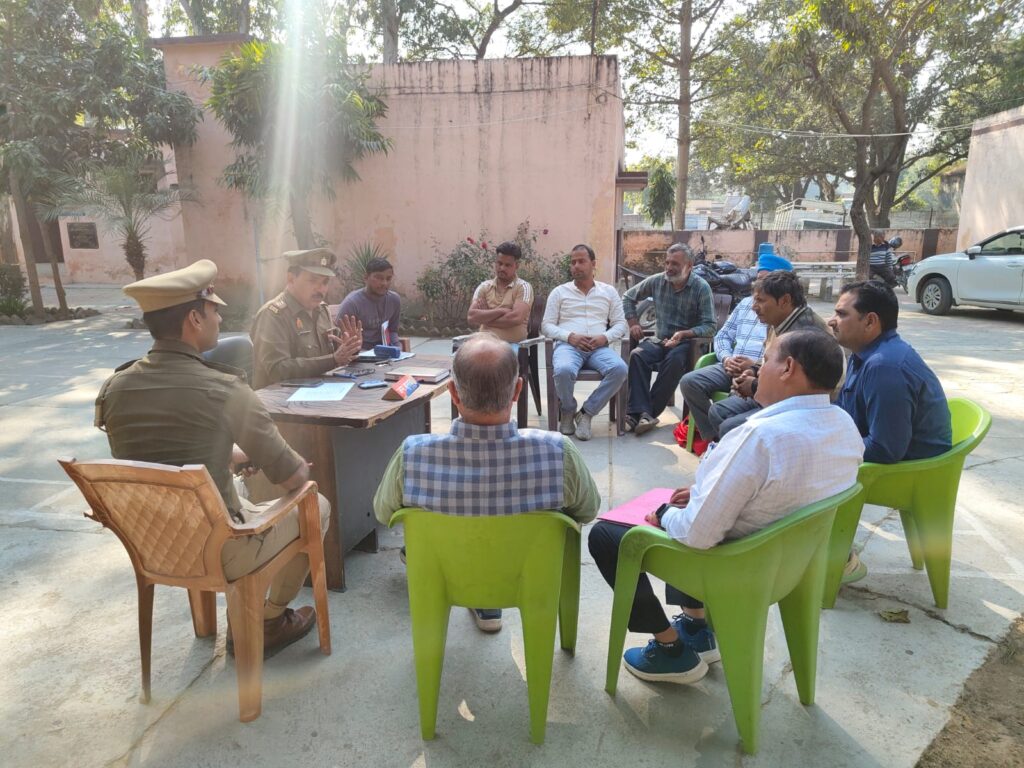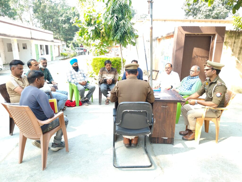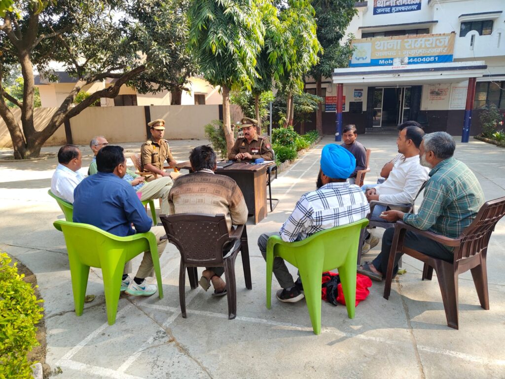 मुजफ्फरनगर, रामराज। वरिष्ठ पुलिस अधीक्षक संजय कुमार वर्मा के निर्देशन में थाना रामराज प्रभारी रवेंद्र सिंह यादव ने टिकौला शुगर मिल के जी, एम, सुनील कुमार, अविनाश सिंह ठेकेदार ट्रांसपोर्टर मलिक मोहित व उम्मेद सहित वाहन चलाक भी बैठक में शामिल रहे। थाना रामराज प्रभारी रवेंद्र सिंह यादव ने ओवरलोड, व ओवरहाइट वाहनों को न चलाने पर रोक लगाने के दिए सख्त निर्देश और कहा कि नाबालिकों एवं वृद्ध व्यक्तियों द्वारा वाहन ने चलाया जाए और उन्होंने कहा की यातायात नियमों का पालन नहीं किया गया तो होगी सख्त कानूनी कार्रवाई ।