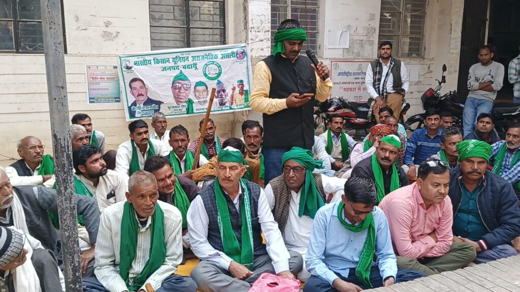 बदायूं,AR महोदय के खिलाफ किया इसका संचालन जिला सचिव सूरज पाल सिंह ने किया और अध्यक्षता जिला उपाध्यक्ष हरीश पटेल जी ने की जिला अध्यक्ष केपीएस राठौर ने कहा की जनपद के अंदर एनपीके डीएपी खाद की उपलब्धता होने के बावजूद भी सहकारी समिति सचिव और उनके साथी दलाल ब सहायक रजिस्टार कोऑपरेटिव महोदय की मिली भगत से किसानों को ज्यादा रैटों में खाद बहुत कम मात्रा में खाद उपलब्ध कराते हैं वह जनपद के अंदर सभी सहकारी समिति सचिव समितियां पर जानबूझकर नहीं पहुंचते हैं किसान खाद के लिए परेशान है यह 11:00 बजे 12:00 बजे 1:00 बजे अपनी मनमर्जी से आते हैं