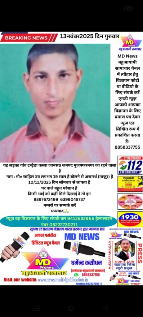 नाम : मौ० साहिल उम्र लगभग 19 साल है बोलने से असमर्थ (माज़ूर) है