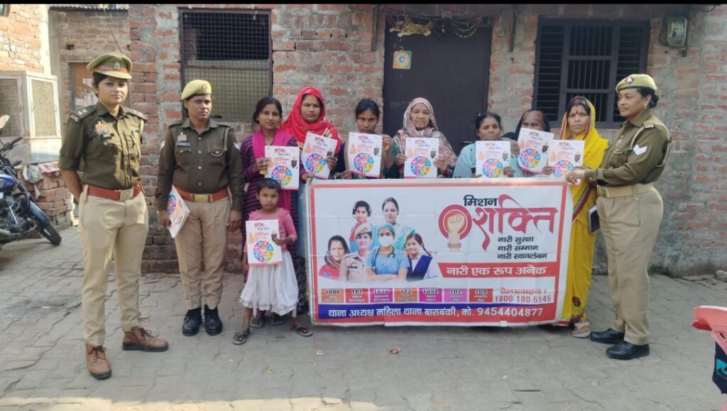 बाराबंकी:- पुलिस अधीक्षक अर्पित विजयवर्गीय के निर्देशानुसार अपर पुलिस अधीक्षक (उत्तरी) विकास चंद्र त्रिपाठी के कुशल पर्यवेक्षण में क्षेत्राधिकारी नगर संगम कुमार के मार्गदर्शन में माननीय मुख्यमंत्री जी द्वारा चलाए जा रहे मिशन शक्ति फेज 5 .0 महिला सशक्तिकरण अभियान /साइबर जागरूकता एवं यातायात जागरूकता अभियान के तहत महिला थानाध्यक्ष मुन्नी सिंह के नेतृत्व मिशन शक्ति टीम उ0नि0 -कामिनी साहू म0हे0कां0-सुमन मौर्य म0हे0कां0 -आशा यादव म.कां.प्रीती के द्वारा- उत्तर टोला बंकी बाराबंकी में नारी सुरक्षा जागरूकता अभियान चलाकर बालिकाओं को नारी सुरक्षा सम्मान व स्वालंबन हेतु -घरेलू हिंसा,बाल विवाह, पास्को एक्ट , गुड टच बैड टच व साइबर क्राइम संबंधी अपराध महिला मिशन शक्ति केंद्र यातायात के नियमों बारे में जागरूक किया गया। उत्तर प्रदेश शासन द्वारा चलाये गये हेल्पलाइन नंबरों 1076 मुख्यमंत्री हेल्पलाइन नंबर,1090 वूमेन पावर हेल्पलाइन नंबर,1098 चाइल्ड हेल्पलाइन नंबर,1930 साइबर हेल्पलाइन नंबर,112 पुलिस आपातकालीन सेवा,108 एंबुलेंस सेवा,102 स्वास्थ्य सेवा