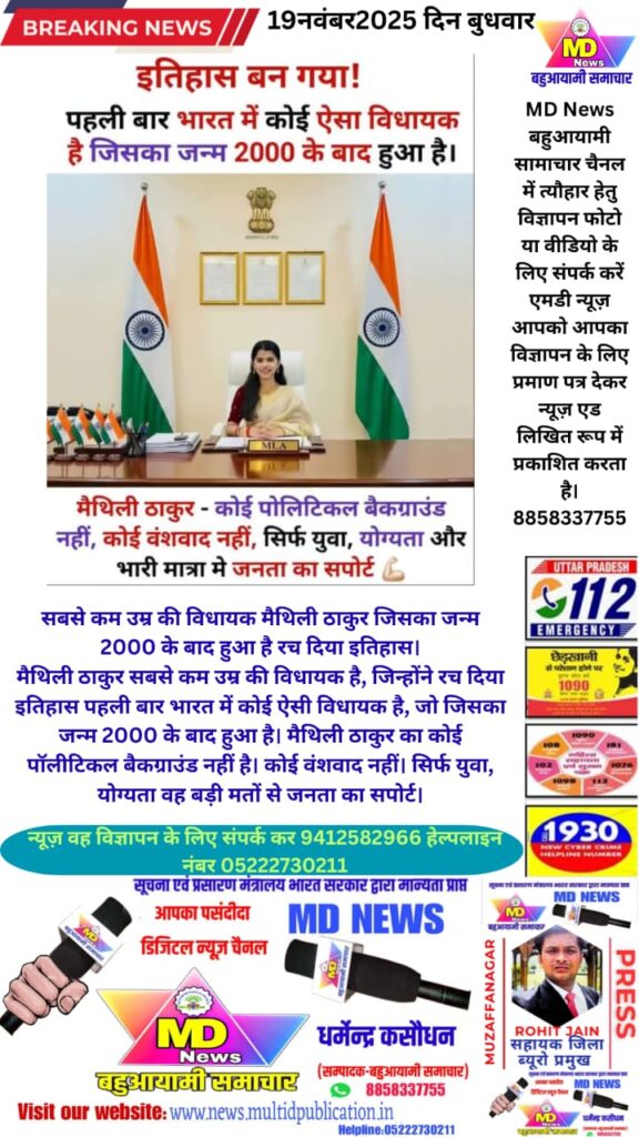 मैथिली ठाकुर सबसे कम उम्र की विधायक है, जिन्होंने रच दिया इतिहास पहली बार भारत में कोई ऐसी विधायक है, जो जिसका जन्म 2000 के बाद हुआ है। मैथिली ठाकुर का कोई पॉलीटिकल बैकग्राउंड नहीं है। कोई वंशवाद नहीं। सिर्फ युवा, योग्यता वह बड़ी मतों से जनता का सपोर्ट।