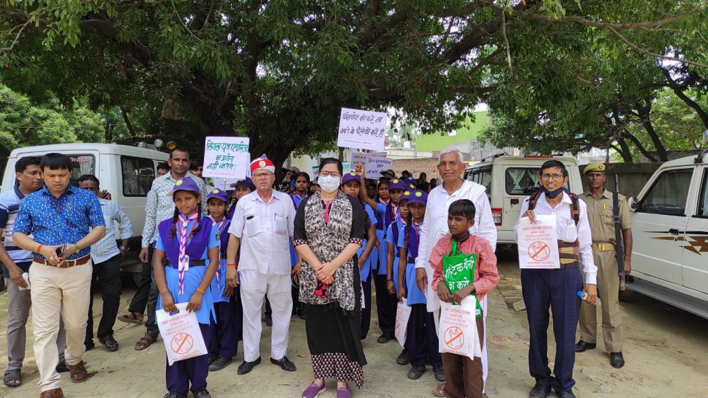 बिसौली : सिंगल यूज प्लास्टिक को लेकर पालिका प्रशासन की ओर से निकाली गई जागरूकता रैली में स्कूली बच्चे हाथों में तख्तियां लेकर नजर आए। बच्चों ने लोगों से सिंगल यूज प्लास्टिक का प्रयोग न करने व थैलों का उपयोग करने के लिए जागरूक किया। तहसील परिसर से निकली जागरूकता रैली को एसडीएम ज्योति शर्मा ने रवाना किया। इस मौके पर उन्होंने कहा कि सिंगल यूज प्लास्टिक मनुष्य के अलावा जानवरों के स्वास्थ्य के लिए भी बेहद हानिकारक है। हम सभी को मिलकर इसके प्रयोग को आज से ही बंद करने की शपथ लेना चाहिए। ईओ नवनीत कुमार ने कहा कि पर्यावरण को बचाने के लिए सिंगल यूज प्लास्टिक को न कहने की सख्त जरूरत है। रैली में संविलित विद्यालय हर्रायपुर के बच्चों ने हाथों में तख्तियां लेकर जमकर नारे लगाए। इस अवसर पर कुंवरसेन, राजीव कुमार, विकास बाबू, सत्यपाल आदि प्रमुखता से उपस्थित रहे।