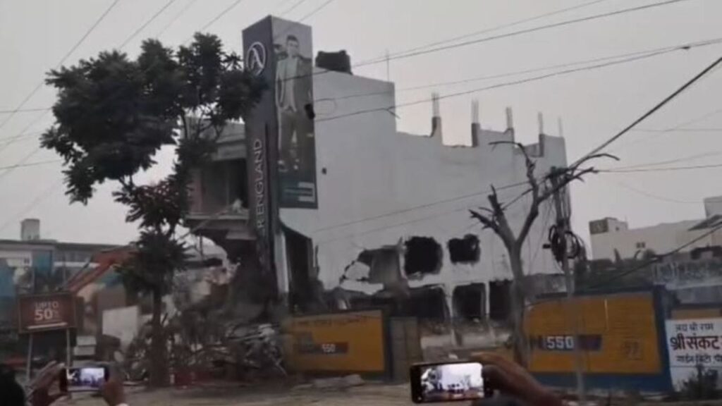 बरेली में बवाल के आरोपी मौलाना तौकीर रजा के करीबी मोहम्मद आरिफ का तीन मंजिला शोरूम आखिरकार धराशायी हो गया। बीडीए ने इस अवैध भवन को तोड़ने के लिए शनिवार को कार्रवाई शुरू की थी। रविवार को भी सुबह 11 बजे से ध्वस्तीकरण की कार्रवाई फिर शुरू की गई।इमारत को गिराने के लिए पोकलेन मशीन और बुलडोजर लगाए गए। करीब छह घंटे चली ध्वस्तीकरण की कार्रवाई में बीडीए की टीम को आखिरकार सफलता मिली। शाम करीब साढ़े पांच बजे पूरी इमारत भराभराकर जमींदोज हो गई। इमारत ध्वस्त होते ही धूल का गुबार आसपास के इलाके में छा गया और कुछ देर के लिए वाहनों की रफ्तार थम गई। पीलीभीत बाइपास रोड किनारे स्थित यह शोरूम बरेली विकास प्राधिकरण से बिना नक्शा पास कराए ही आरिफ ने बनाया था। प्राधिकरण में 2024 में व्यावसायिक भवन के बिना नक्शा बने होने के आरोप में नोटिस जारी किया था। सुनवाई का अवसर भी दिया, लेकिन रसूख के आगे आरिफ ने सुनवाई के अवसर को तवज्जो नहीं दिया।