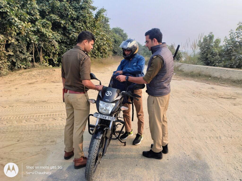 मुजफ्फरनगर, रामराज। आज दिनांक 24, 11,2025 ,को वरिष्ठ पुलिस अधीक्षक संजय कुमार वर्मा व थाना रामराज प्रभारी रवेंद्र सिंह यादव के कुशल नेतृत्व में थाना रामराज पुलिस टीम ने रामराज व पुटठीइब्राहिमपुर के बैंकों में सुरक्षा व्यवस्था व संदिग्धों पर नजर रखने के लिए थाना रामराज क्षेत्र के बैंकों पर चलाया गया चेकिंग अभियान व थाना रामराज क्षेत्र जमालपुर नहर पटरी पर वाहनों की चेकिंग लगातार की जा रही है। जिससे संदिग्ध व्यक्ति व अपराधियों की पहचान हो सके और बिना लाइसेंस बिना हेलमेट आदि कागज पूरे ना होने पर चालान भी काटे गए हैं । और यातायात के नियमों का पालन करने के आदेश भी दिए गए हैं।