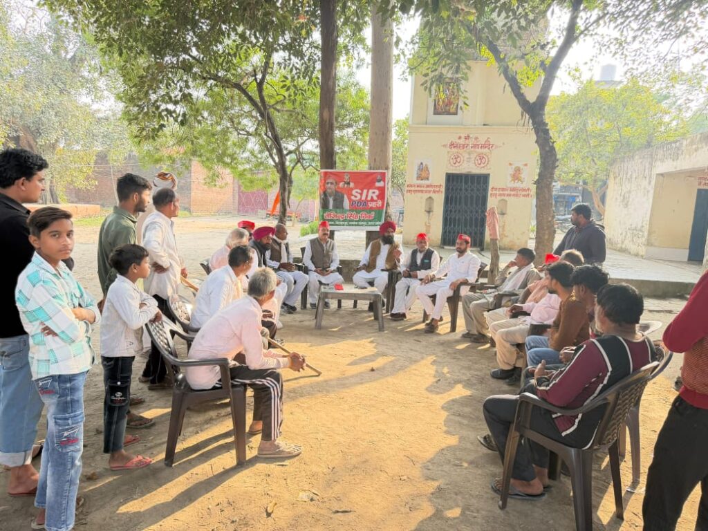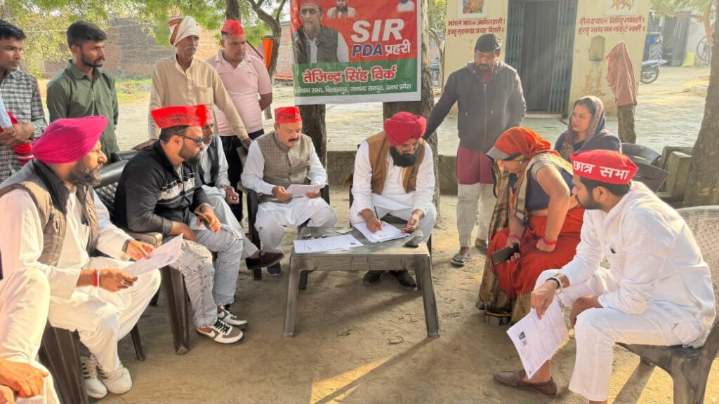बिलासपुर। ग्राम फाजलपुर 36 बिलासपुर में एसआईआर गहन मतदाता पुनरीक्षण के दौरान समाजवादी पार्टी की ओर से मतदाताओं को जागरूक करने के लिए सांसद मुहीबुल्ला नदवी साहब के दिशा निर्देशन मे sir pda प्रहरी के नाम से विशेष कार्यक्रम आयोजित किया गया। सपा के वरिष्ठ नेता और तराई किसान यूनियन के राष्ट्रीय अध्यक्ष तेजिंदर सिंह विर्क की अध्यक्षता में बैठक हुई, जबकि संचालन सांसद प्रतिनिधि अथर अली खां ने किया। कार्यक्रम में लोगों को मतदाता सूची में नाम जोड़ने की प्रक्रिया समझाई गई और बीएलओ की मौजूदगी में मौके पर ही फॉर्म भरवाने में सहायता की गई। नेताओं ने कहा कि हर योग्य नागरिक का नाम मतदाता सूची में होना जरूरी है ताकि वह लोकतांत्रिक प्रक्रिया में अपनी भूमिका निभा सके।