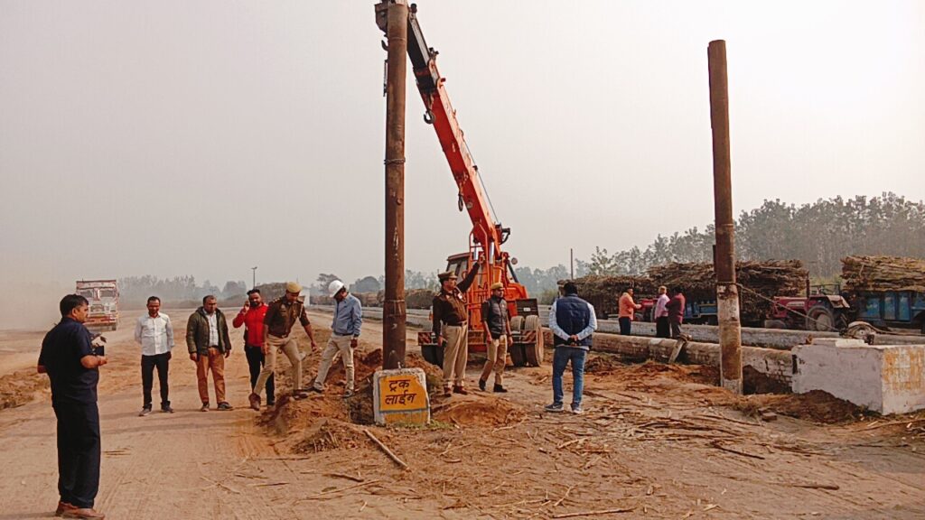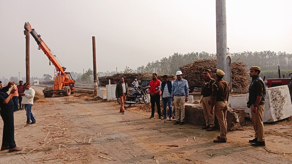 अवगत कराना हैआज दिनांक 24,11,2025, को जनपद मुज़फ्फरनगर थाना रामराज क्षेत्र पुटठी इब्राहिमपुर मे स्थित टिकौला शुगर मिल के प्रबंधन व थाना रामराज पुलिस टीम थाना प्रभारी रवेंद्र सिंह यादव द्वारा सर्दियों में रात्रि के समय कम दृष्यता तथा कोहरे के कारण होने वाली दुर्घटनाओं की रोकथाम के लिये मिल पर गन्ने का परिवहन करने वाले वाहनों पर रेडियम पेंट एवं रिफ्लेक्टर टेप लगाए गए, जिससे रात्रि के समय कम दृष्यता, धुंध तथा कोहरे में वाहन आसानी से दिखाई दे सकें और दुर्घटनाओं की रोकथाम हो सके। साथ ही ओवरलोडिंग पर रोक लगाते हुए सुनिश्चित किया गया कि शुगर मिल में आने वाले वाहन निर्धारित क्षमता के अनुरूप ही संचालित हों, इस उद्देश्य से रेलवे के मानकों के अनुरूप हाइट गेज तैयार किया गया है जिसकी निर्धारित ऊँचाई व चौड़ाई से अधिक आकार वाले वाहनों को रोककर सुरक्षित यातायात व्यवस्था सुनिश्चित की जाएगी। इसके साथ ही पुलिस टीम द्वारा मिल पर गन्ने का परिवहन करने वाले वाहन चालकों को जागरूक करते हुए बताया गया कि वाहन को अधिक गति से न चलाएं, धुंध/कोहरे के दौरान हेडलाइट–इंडिकेटर का सही उपयोग करें, वाहन की लाइट, ब्रेक एवं अन्य तकनीकी हिस्सों की समय-समय पर जांच अवश्य करें।