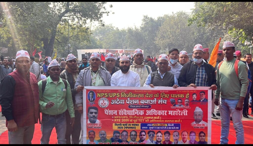 जंतर मंतर पर पुरानी पेंशन बहाली धरने में शामिल हुए गोरखपुर से सैकड़ों शिक्षक-कर्मचारी