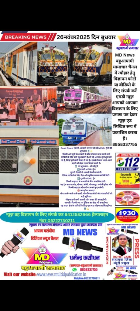 दिल्ली और यूपी के शामली के बीच रोजाना यात्रा करने वाले यात्रियों के लिए बड़ी खुशखबरी है। दो नई MEMU ट्रेनें शुरू की गई हैं, जिन्हें हरी झंडी दिखा दी गई है। इससे रोजाना आने–जाने वालों को बेहद राहत मिलने वाली है।