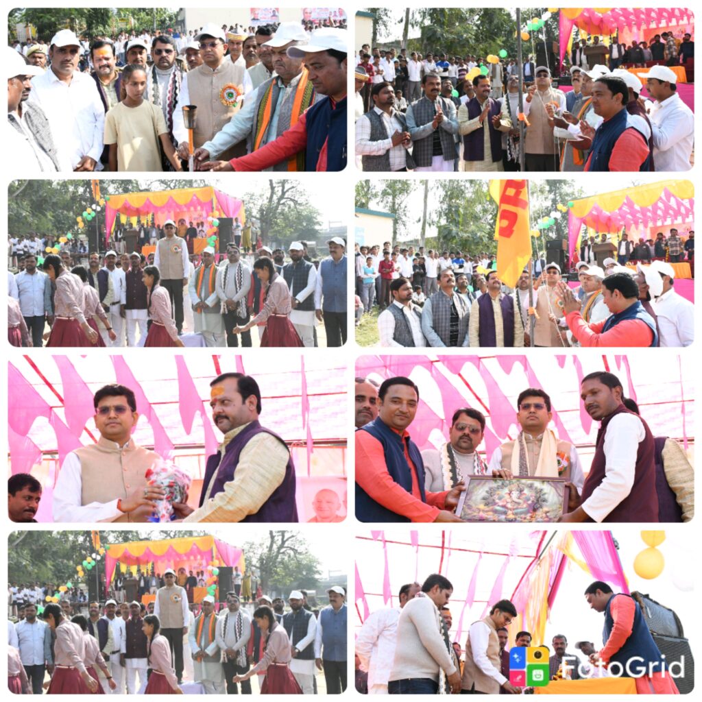 सिद्धार्थनगर 26 नवम्बर 2025/विकास खंड स्तरीय सांसद खेल महोत्सव का ब्लाक संसाधन केंद्र खेल परिसर बर्डपुर में जिलाधिकारी श्री शिवशरणप्पा जीएन व अन्य जन प्रतिनिधियों ने मशाल जला व झंडा फहराकर प्रतियोगिता का शुभारंभ किया।