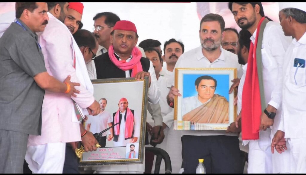 बीते लोकसभा चुनाव के दौरान राहुल गांधी व अखिलेश यादव को तस्वीरें भेंट करते मोहम्मद मुस्लिम