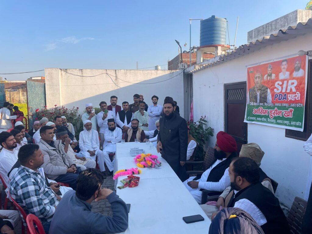 आज दिनांक 28/11/2025 को SIR को लेकर बिलासपुर के वार्ड नंबर 9 बिशरत नगर में पूर्व सभासद असीम हुसैन खान के मकान पर एक मीटिंग का आयोजन किया गया जिसमें रामपुर सांसद मौलाना मोहिबुल्लाह नदवी साहब तशरीफ लाए उनके साथ तराई किसान यूनियन के राष्ट्रीय अध्यक्ष सरदार तेजिंदर सिंह विर्कसांसद प्रतिनिधि पूर्व सभासद अथर अली खां एवं समाजवादी पार्टी के वरिष्ठ नेता मोहम्मद याकूब खान युवा नेता मोहम्मद अनस खान आदि ने अपने-अपने विचार रखें सभी से SIR गणना फॉर्म भरने की अपील की कोई भी फॉर्म भरने से ना छूटे इसके लिए जनता को जागरूक किया और फॉर्म कैसे भरा जाए उसके बारे में विस्तार पूर्वक बताया इससे पहले सांसद मोहिबुल्लाह नदवी अपने तमाम साथियों व समाजवादी पार्टी के कार्यकर्ता व नेताओं के साथ आज दोपहर जिलाधिकारी महोदय से भी मिलकर आए थे वहीं दूसरी ओर नगर टांडा हर्मतनगर में नवी हसन उर्फ रवि के आवास पर एक जनसभा को संबोधित किया व तमाम लोगों को संबोधित करते हुए लोगों को SIR के बारे में जागरूक किया यह बता दे बिलासपुर दौरे पर थे इस मौके पर असीम हुसैन खान पूर्व सभासद जिया खान सभासद,नबी हसन उर्फ रवि समाजवादी छात्र सभा के उत्तराखंड अध्यक्ष ओसियन यादव जी सांसद मीडिया प्रभारी एडवोकेट महबूब अली पाशा हाफिज नूरी नासिर शेख डॉक्टर जफर खान डॉ नावेद खान आदि लोग शामिल रहे