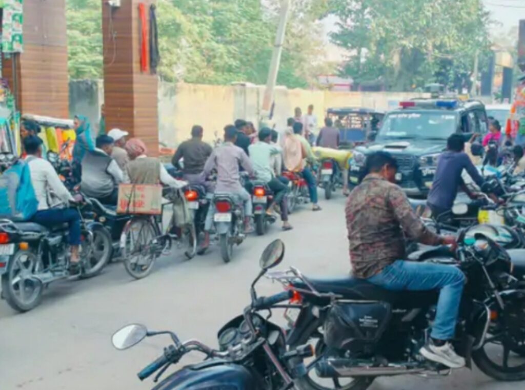 मितौली कस्बे में भीषण जाम की समस्या। दैनिक जीवन और आपातकालीन सेवाओं पर पड़ रहा असर, पैदल चलने वाले भी परेशान।