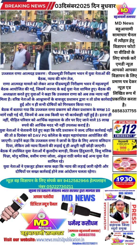 युवा नेताओं ने चेतावनी देते हुए कहा कि यदि प्रशासन ने जल्द उचित कार्रवाई नहीं की तो 8 दिसंबर को DAV PG कॉलेज के बाहर महापंचायत आयोजित की जाएगी। उन्होंने कहा कि उज्जवल राणा ने छात्रों के हित के लिए अपना बलिदान दिया, लेकिन उसे न्याय दिलाने की लड़ाई यूं ही अधूरी नहीं छोड़ी जाएगी।