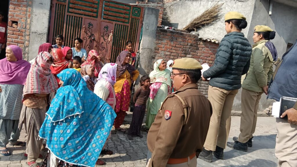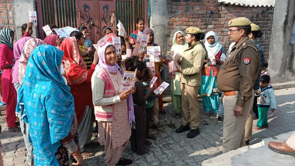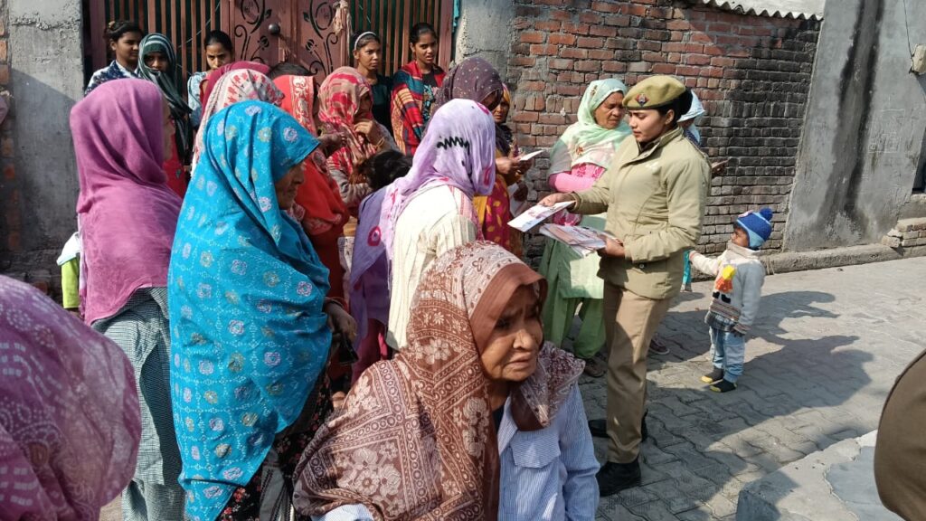 मुजफ्फरनगर, रामराज। वरिष्ठ पुलिस अधीक्षक मुजफ्फरनगर संजय वर्मा के निर्देशन में एवंम रामराज थाना प्रभारी रवेंद्र सिंह यादव के कुशल नेतृत्व में आज दिनांक 03/12/2025 को थाना रामराज क्षेत्र के नया गाँव में एंटी रोमियो टीम, ने महिलाओं को सुरक्षा सम्मान में व यातायात के नियमों के विषय में जागरूक कराया। व सरकार द्वारा चलाई जा रही विभिन्न योजनाओं जैसे विधवा पेंशन योजना, वृद्धा पेंशन योजना ,प्रधानमंत्री आवास योजना, उज्ज्वला योजना, मुख्यमंत्री सामूहिक विवाह योजना, प्रधानमंत्री जन आरोग्य योजना ,तथा नशा मुक्ति व भारत अभियान की जानकारी देते हुए बताया और महिलाओं को उनकी सुरक्षा में सम्मान के प्रति जागरुक करते हुए विभिन्न हेल्पलाइन नंबर जैसे वूमेन पावर लाइन 1090,महिला हेल्पलाइन 181,पुलिस आपातकालीन सेवा 112, स्वास्थ्य सेवा 102,108,आदि नंबरों की जानकारी दी गई। तथा पंपलेट वितरित किए गए । व बेटी पढ़ाओ बेटी बचाओ, आयुष्मान योजना, महिला शक्ति योजना, की विस्तृत जानकारी देकर जागरूक कराया गया।