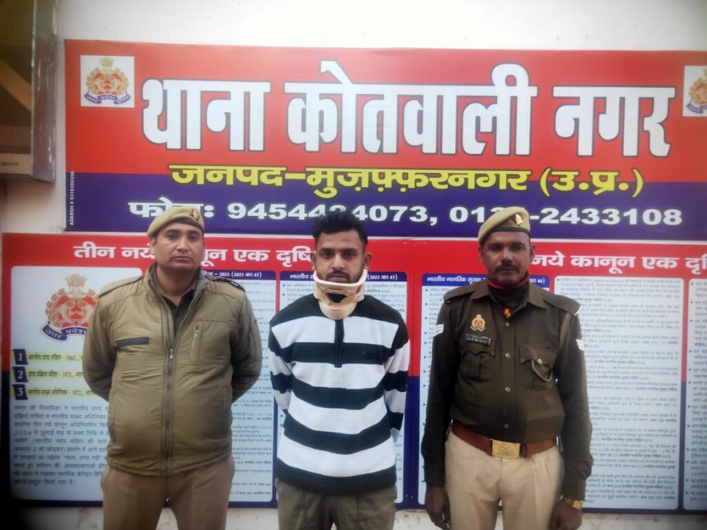 मुजफ्फरनगर।वरिष्ठ पुलिस अधीक्षक जनपद मुज़फ्फरनगर संजय कुमार वर्मा के एवंम थाना प्रभारी निरीक्षक कोतवाली नगर मु0नगर के नेतृत्व में जनपद मे वारन्टी एवं वाँछित अपराधियों के विरूद्ध चलाये गये आपरेशन चक्रव्यूह के दौरान थाना कोतवाली नगर पुलिस के द्वारा दिनांक 04.12.25 को एक नफर वारण्टी अभियुक्त– 1.सन्नी उर्फ तोता पुत्र मांगेराम निवासी उत्तरी रामपुरी थाना कोतवाली नगर मुजफ्फरनगर को उसके मसकन से गिरफ्तार किया गया