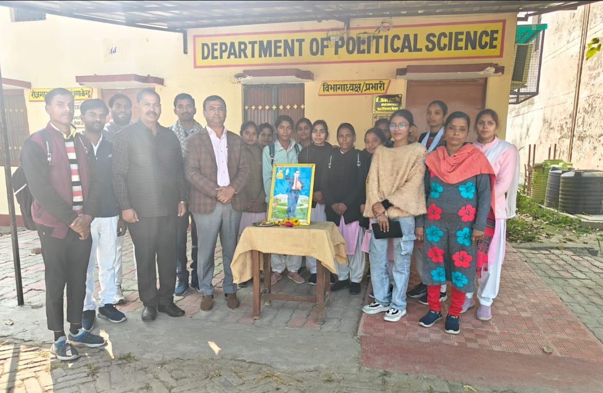 राजनीति शास्त्र विभाग के तत्वाधान में आज बाबा साहब बी0आर0 अंबेडकर जी का महापरिनिर्वाण दिवस भावभीनी श्रद्धांजलि देकर मनाया गया ।