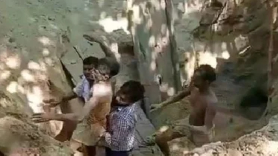 हरदोई……….हरपालपुर। अरवल थाना क्षेत्र के कुलिया गांव में सोमवार को कच्चे कुएं की सफाई के दौरान किनारे धंसने से मलबे में दबकर एक युवक गंभीर रूप से घायल हो गया। चार घंटे तक चले रेस्क्यू ऑपरेशन के बाद उसे बाहर निकाल कर अस्पताल में भर्ती कराया गया।कुलिया गांव निवासी राम मित्र (45) सोमवार को अपने घर के सामने बने कच्चे कुआं की अंदर घुसकर सफाई कर रहा था। इस दौरान कुआं की कच्ची मिट्टी ढह गई। इसके मलबे में राममित्र दब गया।ग्रामीणों ने घटना की सूचना पुलिस को दी। पुलिस जेसीबी लेकर मौके पर पहुंची। इसके बाद ग्रामीणों की मदद से चार घंटे तक चले रेस्क्यू ऑपरेशन में जेसीबी मशीन से कुआं की मिट्टी हटवाकर उसे बाहर निकाला गया।