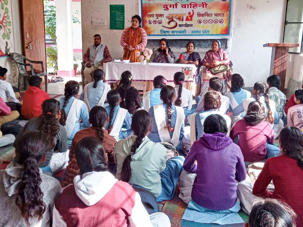 बाराबंकी। नशा मुक्त युवा विकसित भारत का आधार है। स्वस्थ युवा समृद्ध भारत की रीढ़ है उक्त बातें मुख्य वक्ता दुर्गा वाहिनी विभाग संयोजिका नेहा मिश्रा ने राजकीय हाई स्कूल भनौली में विश्व हिंदू परिषद दुर्गा वाहिनी के द्वारा आयोजित नशा मुक्त युवा विकसित भारत कार्यक्रम में कही। इससे पूर्व विद्यालय की प्रधानाचार्य सरोज सिंह,दुर्गा वाहिनी विभाग संयोजिका नेहा मिश्रा,जिला सह संयोजिका संगीता वर्मा व जिला साप्ताहिक मिलन प्रमुख सरिता सिंह ने संयुक्त रूप से महिषासुर मर्दिनी के चित्र के सम्मुख दीप प्रज्ज्वलित कर कार्यक्रम का शुभारंभ किया।