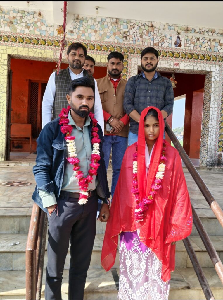 फतेहाबाद थाना क्षेत्र से कुशवाह समाज का एक युवक शनिवार को समाज की ही एक युवती को पास के गांव से भगा ले गया था। समाज में बदनामी होती देख सती मंदिर पर समाज के लोग एकत्रित हुए और प्रेमी जोड़े को मंदिर पर बुलाकर विवाह के पवित्र बंधन में बांधकर युवती के परिजनों ने खुशी-खुशी युवक के साथ प्रेमिका की विदाई कर दी। समाज के लोगों द्वारा कराए गए प्रेम विवाह का वीडियो भी सोशल मीडिया पर वायरल हुआ। अखिल भारतीय युवा कुशवाह महासभा उत्तर प्रदेश के पूर्व प्रदेश अध्यक्ष प्रिंस कुशवाह ने बताया कि फतेहाबाद थाना क्षेत्र के गांव खेड़ा जवाहर निवासी संदीप कुशवाह का पास के गांव की एक युवती से प्रेम प्रसंग चल रहा था। शनिवार को प्रेमी युगल घर से भाग गए थे। समाज की बदनामी के डर से धिमिश्री मां सती मंदिर पर समाज के लोग एकत्रित हुए। तथा प्रेमी युगल के परिजनों को भी बुलाया गया। प्रेमी युगल को शादी का आश्वासन देकर मंदिर पर बुलाया गया। पंचों की सहमति से प्रेमी युगल के परिजनों के सामने प्रेमी युगल का मंदिर पर ही प्रेम विवाह कर दिया गया। प्रेम विवाह का वीडियो भी सोशल मीडिया पर वायरल किया गया। इस अवसर पर प्रिंस कुशवाहा, बंटी कुशवाहा, प्रधान मनीष कुशवाहा, प्रधान भोला कुशवाह, प्रधान छोटू कुशवाह, संजू कुशवाह, डॉ. वेदप्रकाश कुशवाह, रामकेश कुशवाह सहित समाज के कई अन्य गणमान्य लोग मौजूद रहे।