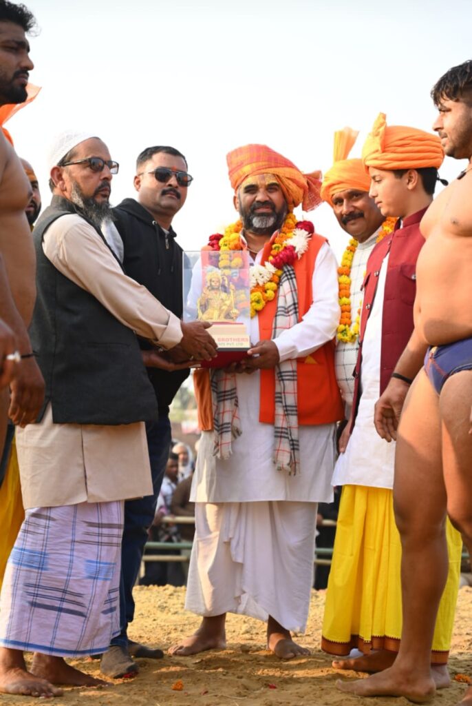 में बुधवार से शुरू हुई दो दिवसीय अखिल भारतीय विराट दंगल का उदघाटन पूर्व कारागार मंत्री राकेश वर्मा एव हनुमानगढी अयोध्या से आये महन्त श्री श्री 1008 पूज्य बलरामदास जी महराज प्रदीप यादव विंद्रा स्वीट ने पहलवानों से हाथ मिलवाकर किया।