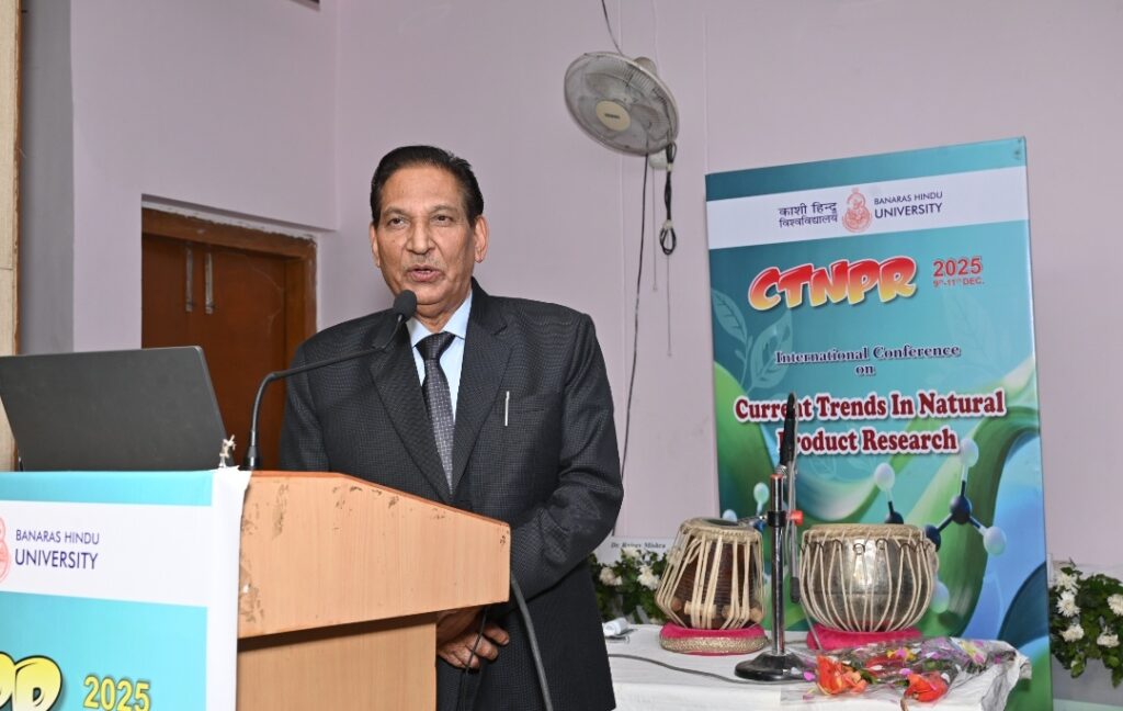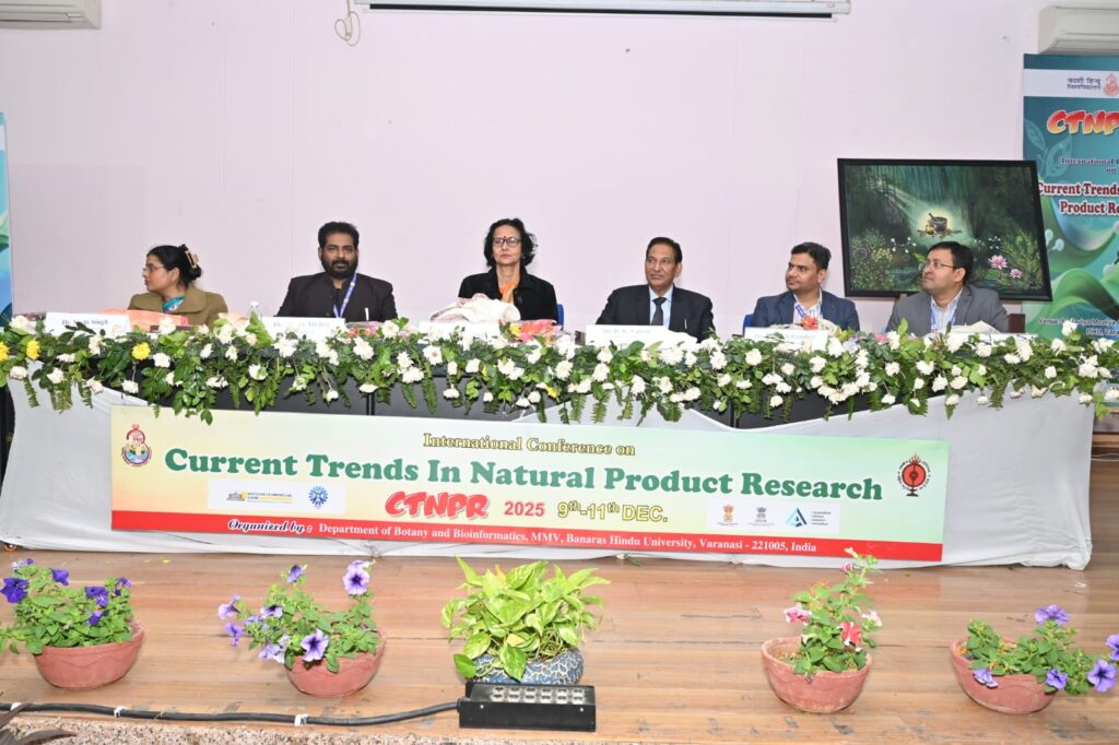 Varanasi The valedictory session of the International Conference on Current Trends in Natural Product Research was held today, December 11, at Banaras Hindu University, organized by the Department of Botany & Bioinformatics, Mahila Mahavidyalaya, at the Malaviya Moolya Anusheelan Kendra. The conference was inaugurated by the Hon’ble Vice Chancellor of Banaras Hindu University, Prof. Ajit Kumar Chaturvedi on December, 9. The session began with floral tributes to Bharat Ratna Mahamana Pt. Madan Mohan Malaviya followed by the ceremonial lighting of the lamp.