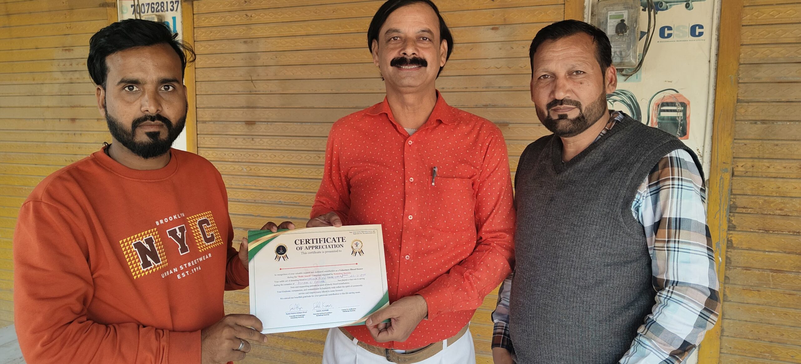 सोसायटी के पदाधिकारी फरमान अली रिजवी ने ब्लड डोनेट कैंप मे सहयोग के लिए प्रशस्ति पत्र देकर जताया आभार