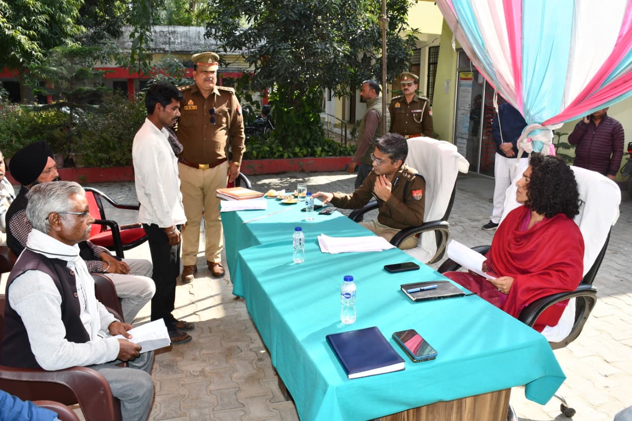 फरधान खीरी।थाना समाधान दिवस पर डीएम दुर्गा शक्ति नागपाल व एसपी खीरी, संकल्प शर्मा द्वारा थाना फरधान पर फरियादियों की समस्याओं को सुना गया तथा राजस्व और पुलिस विभाग के अधिकारियों/कर्मचारियों को टीम बनाकर मौके पर जाकर शिकायतों को गम्भीरता से लेकर शत-प्रतिशत निष्पक्ष निस्तारण करने हेतु निर्देशित किया गया। एसपी संकल्प शर्मा द्वारा पुलिस कर्मियो को निर्देशित किया गया कि थाना समाधान दिवस में प्राप्त शिकायती प्रार्थना पत्रों का गुणवत्तापूर्ण निस्तारण जल्द से जल्द किया जाना चाहिए। जिन प्रार्थना पत्रों का निस्तारण उच्चाधिकारी स्तर से किया जाना है। उन पर रिपोर्ट लगाकर सम्बन्धित अधिकारी को प्रेषित करें जिससे समय से उचित निस्तारण कराया जा सके। इसके अतिरिक्त जनपद के समस्त क्षेत्राधिकारीगण द्वारा अपने-अपने सर्किल के थानों पर उपस्थित रहकर जनशिकायतों का निस्तारण कराया गया।