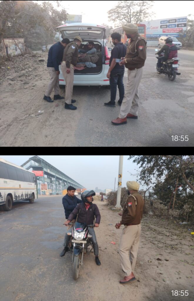 मुजफ्फरनगर, रामराज। आज दिनांक 15,12,2025 ,को वरिष्ठ पुलिस अधीक्षक संजय कुमार वर्मा व थाना रामराज प्रभारी रवेंद्र सिंह यादव के कुशल नेतृत्व में थाना रामराज पुलिस टीम ने सुरक्षा व्यवस्था व संदिग्धों पर नजर रखने के लिए थाना रामराज क्षेत्र के भारतीय स्टेट बैंक पर व गंगा बैराज चौकी ओर नहर की पटरी पर व हुसैन पुर चौकी पर रामराज पुलिस टीम उपनिरीक्षक अशोक कुमार,उपनिरीक्षक,शिवदत्तकुमार,उपनिरीक्षक दिनेश कुमार, उपनिरीक्षक हर्षित शर्मा, कांस्टेबल विकास कुमार, व कांस्टेबल बहादुर सिंह, ने चलाया गया चेकिंग अभियान मे वाहनों की चेकिंग लगातार की जा रही है। मोटर साइकिल चार पहिया वाहनों के और बिना लाइसेंस बिना हेलमेट आदि कागज पूरे ना होने पर चालान भी काटे जा रहे हैं । और यातायात के नियमों का पालन करने के आदेश दिए गए। बाईक सवारो व चार पहिया वाहनों की तलाशी भी ली जा रही है। ओर कहा वाहनों को लापरवाही से ना चलाये।