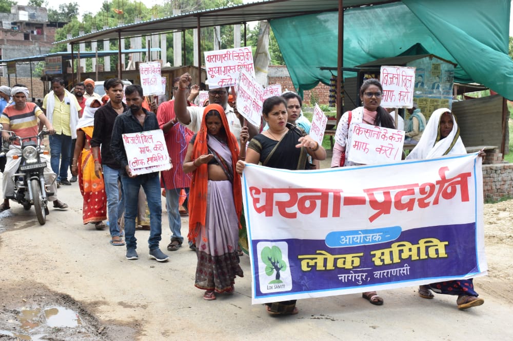 रोहनिया- लोक समिति व ग्राम प्रधान संघ आराजी लाइन के संयुक्त तत्वावधान में सैकड़ो किसानों ने वाराणसी जिले को सूखाग्रस्त घोषित करने की माँग को लेकर तहसील राजातालाब में धरना प्रदर्शन किया। लोगों ने उपजिलाधिकारी को माँग पत्र सौपा और वाराणसी जिले को अविलम्ब सूखा घोषित किये जाने की माँग किया। आराजी लाइन और सेवापुरी ब्लाक के दर्जनों गाँव से आये आक्रोशित किसानों ने राजातालाब बाजार से रैली निकालकर तहसील राजातालाब के गेट पर पहुँचे। तहसील के मुख्य गेट पर खड़े होकर किसानों ने अपनी मांग को लेकर खूब नारे लगाये। बाद में किसानों ने मुख्यमंत्री व प्रधानमंत्री को संबोधित ज्ञापन के माध्यम से जिले को सूखे की माँग लेकर अविलम्ब कार्यवाही की माँग किया। धरने में शामिल किसानों ने कहा कि जुलाई माह बीतने के कगार पर है और यह महीना बिन बरसात के गुजरने वाला है बारिश नही हो पाने के वजह से जिले के किसान ज्वार, तिल, मक्का, सब्जी, अरहर आदि की फसल के अलावा धान की रोपाई नहीं कर पाए। बारिश का इंतजार करते करते धान की नर्सरी अब खराब हो गयी है। किसान भुखमरी के कगार पर है पर ऐसी दशा में शासन प्रशासन हाथ पर हाथ रखकर सिर्फ तमाशा देख रहा है।