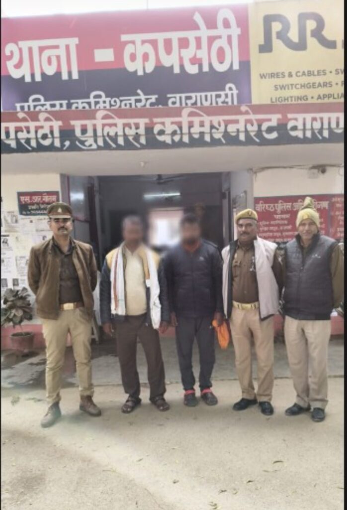 थाना कपसेठी पुलिस द्वारा मुखबिर की सूचना पर भीषमपुर गेट के पास तक्खु की बौली के पास से दहेज हत्या के सम्बन्ध में पंजीकृत मु0अ0सं0 175/2025 धारा 85/80(2)/131 बीएनएस व 3/4 दहेज प्रतिषेध अधिनियम में वांछित अभियुक्त मृतका के पति रंजीत कुमार पुत्र राजेन्द्र राजभर निवासी ग्राम दिलावलपुर थाना कपसेठी जनपद वाराणसी उम्र करीब 25 वर्ष तथा ससुर राजेन्द्र राजभर पुत्र स्व0 देवनाथ राजभर निवासी ग्राम दिलावलपुर थाना कपसेठी जनपद वाराणसी उम्र करीब 48 वर्ष को गिरफ्तार कर आवश्यक विधिक कार्रवाई की जा रही है।
