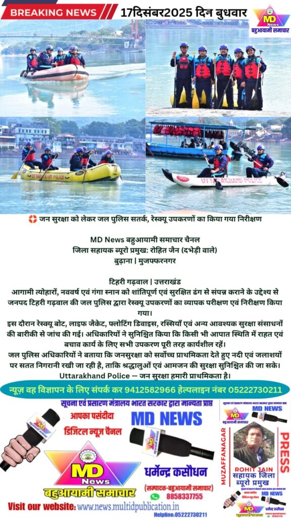आगामी त्योहारों, नववर्ष एवं गंगा स्नान को शांतिपूर्ण एवं सुरक्षित ढंग से संपन्न कराने के उद्देश्य से जनपद टिहरी गढ़वाल की जल पुलिस द्वारा रेस्क्यू उपकरणों का व्यापक परीक्षण एवं निरीक्षण किया गया।