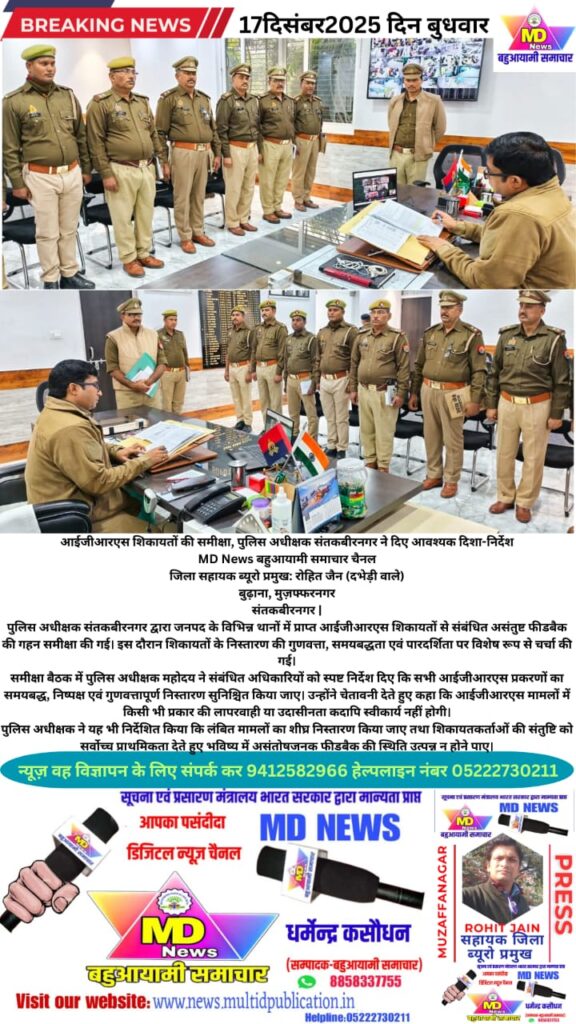 पुलिस अधीक्षक संतकबीरनगर द्वारा जनपद के विभिन्न थानों में प्राप्त आईजीआरएस शिकायतों से संबंधित असंतुष्ट फीडबैक की गहन समीक्षा की गई। इस दौरान शिकायतों के निस्तारण की गुणवत्ता, समयबद्धता एवं पारदर्शिता पर विशेष रूप से चर्चा की गई।