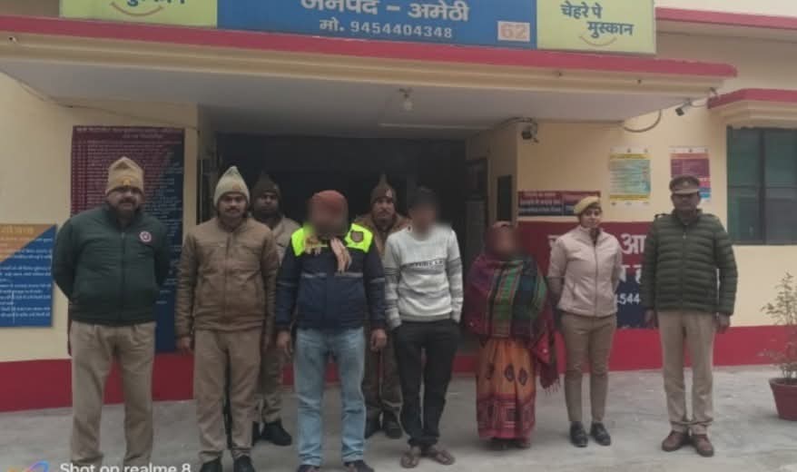 पुलिस अधीक्षक अमेठी श्रीमती अपर्णा रजत कौशिक के निर्देशन में एवं अपर पुलिस अधीक्षक अमेठी श्री ज्ञानेद्र कुमार सिंह के पर्यवेक्षण में जनपद अमेठी में अपराध एवं अपराधियों के धर पकड़ हेतु चलाये जा रहे अभियान के क्रम में दिनांक 18.12.2025 को क्षेत्राधिकारी गौरीगंज श्री अखिलेश वर्मा के कुशल नेतृत्व में थाना मुंशीगंज पुलिस द्वारा देखभाल क्षेत्र व वांछित अभियुक्तों की तलाश के दौरान मुखबिर की सूचना पर मु0अ0सं0 219/24 धारा 319(2), 315(4), 338, 336(3), 340, 61(2) बीएनएस थाना मुंशीगंज जनपद अमेठी में वांछित 03 नफर अभियुक्त/अभियुक्ता 1.दिनेश कुमार मिश्रा पुत्र स्व0 धर्मपाल, 2. सुशील कुमार मिश्रा पुत्र स्व0 धर्मपाल निवासीगण पूरे पाण्डेय मजरे रंजीतपुर थाना मुसाफिरखाना जनपद अमेठी, 3.सुनीता पुत्नी स्व0 दशरथ पाण्डेय निवासी ग्राम पूरे मनीराम पाण्डेय मजरे जलामा थाना मुंशीगंज जनपद अमेठी गिरफ्तार किया गया । गिरफ्तारी के संबंध में थाना मुंशीगंज पुलिस द्वारा आवश्यक विधिक कार्यवाही की जा रही है ।