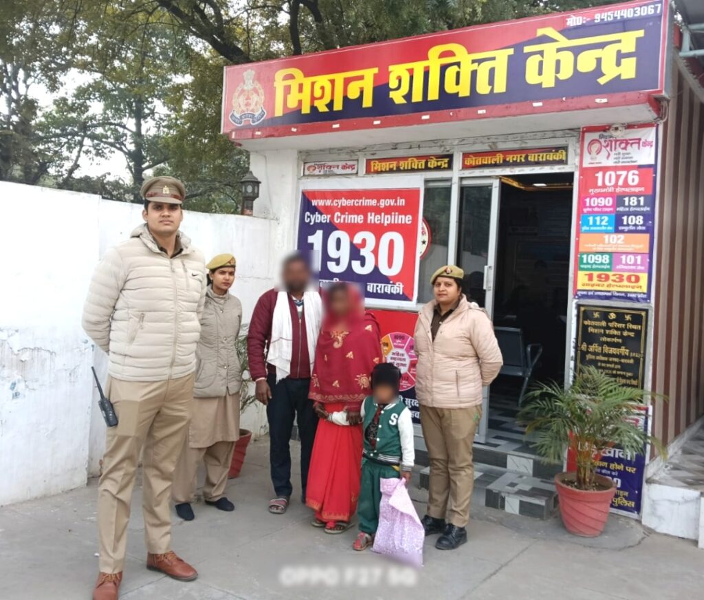 दिनांक 18.12.2025 को थाना कोतवाली नगर बाराबंकी क्षेत्रान्तर्गत मण्डी चौकी में एक 28 वर्षीय नेत्रहीन महिला व 06 वर्षीय बच्चे के रास्ता भटकर आने की सूचना प्राप्त हुई। उक्त सूचना पर थाना कोतवाली नगर पर ‘मिशन शक्ति केन्द्र’ पर नियुक्त महिला आरक्षी प्रीती तिवारी एवं महिला आरक्षी अंशिका पाठक द्वारा उक्त महिला व बच्चे को अभिरक्षा में लिया गया, जो अपना संपर्क नंबर बताने में असमर्थ थी। आज दिनांक 19.12.2025 को थाना कोतवाली नगर पुलिस द्वारा अथक प्रयास कर एवं सी-प्लान ऐप के माध्यम से उक्त महिला के परिजन उनके पति से सम्पर्क कर सुपुर्द किया गया। परिजनों द्वारा थाना कोतवाली नगर बाराबंकी पुलिस का आभार प्रकट करते हुए भूरि-भूरि प्रशंसा की गई।