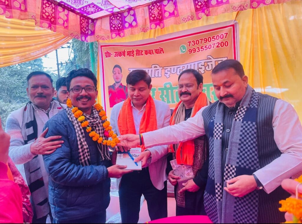 शनिवार को आयोजित कार्यक्रम में बतौर मुख्य अतिथि भाजपा के विधान सभा के सम्भावित प्रत्याशी डॉ विवेक वर्मा, भाजपा जिला उपाध्यक्ष प्रमोद तिवारी, भाजपा पिछड़ा वर्ग मोर्चा के प्रदेश उपाध्यक्ष पंकज गुप्ता पंकी, भाजपा नेता महिला अ़धिवक्ता मालती यादव का माल्यार्पण कर अंग वस्त्र प्रदान कर भाजपा से फतेहपुर पंचम से संभावित जिला पंचायत सदस्य प्रत्याशी उत्कर्ष पाण्डेय ने भव्य स्वागत किया। वहीं पंकज गुप्ता पंकी ने होनहार समाजसेवी उत्कर्ष पाण्डेय को भी अंगवस्त्र व महाकाल महादेव का चित्र देखकर बेहतर भविष्य के लिए आशीष दिया।