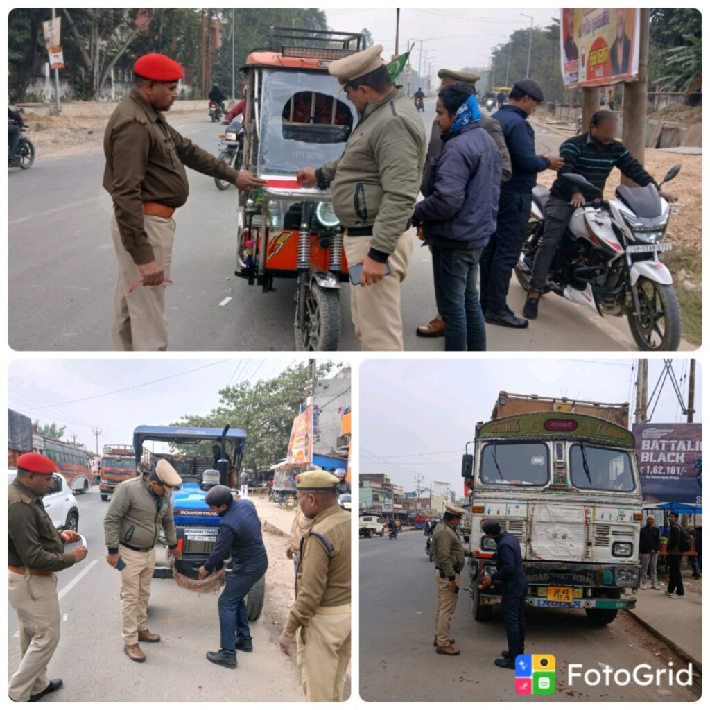 (रिपोर्ट सूरज गुप्ता) सिद्धार्थनगर जनपद में सड़क सुरक्षा को लेकर यातायात पुलिस द्वारा विशेष अभियान चलाया गया। पुलिस अधीक्षक सिद्धार्थनगर डॉ. अभिषेक महाजन के आदेश के क्रम में एवं अपर पुलिस अधीक्षक प्रशांत कुमार प्रसाद के निर्देशन में, क्षेत्राधिकारी यातायात सुजीत कुमार राय के कुशल पर्यवेक्षण में प्रभारी यातायात अमरेश कुमार द्वारा मय टीम 20 दिसंबर 2025 को यातायात नियमों के अनुपालन हेतु व्यापक अभियान चलाया गया।