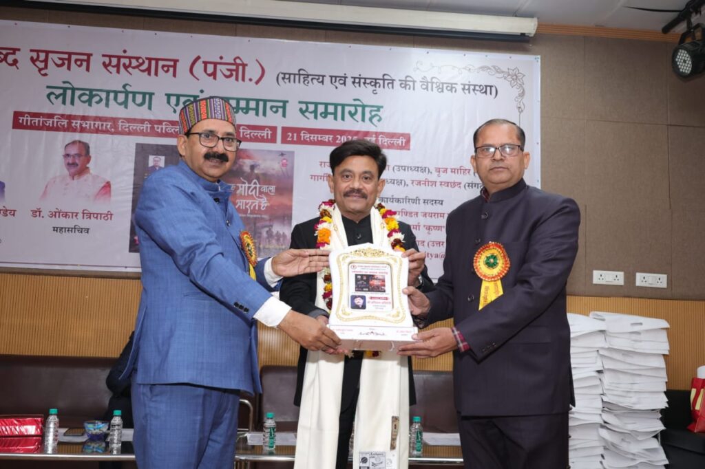 नई दिल्ली, 21 दिसंबर।अंतरराष्ट्रीय स्तर पर साहित्य एवं संस्कृति के लिये समर्पित संस्था शब्द सृजन संस्थान (पंजी) के तत्वावधान में दिल्ली पब्लिक लाइब्रेरी, श्यामा प्रसाद मुखर्जी मार्ग स्थित गीतांजलि सभागार में ऑपरेशन सिंदूर पर आधारित साझा काव्य संकलन “यह मोदी वाला भारत है” का भव्य लोकार्पण संपन्न हुआ। इस संकलन का संपादन साहित्यकार डॉ. राजीव कुमार पाण्डेय एवं डॉ. ओंकार त्रिपाठी द्वारा किया गया है।